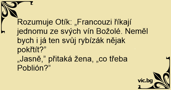 Rozumuje Otík: „Francouzi říkají jednomu ze svých vín Božolé. Neměl bych i já ten svůj rybízák nějak pokřtít?”
