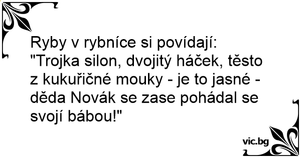 "Trojka silon, dvojitý háček, těsto z kukuřičné mouky - je to jasné - děda Novák se zase pohádal se svojí bábou!"