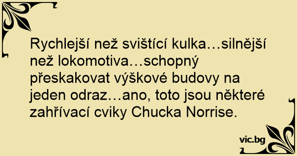 Rychlejší než svištící kulka…silnější než lokomotiva…schopný přeskakovat výškové budovy na jeden odraz…ano, toto jsou některé zahřívací cviky Chucka Norrise.