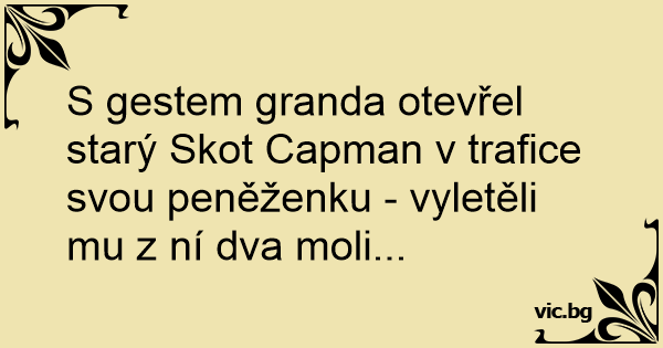 S gestem granda otevřel starý Skot Capman v trafice svou peněženku - vyletěli mu z ní dva moli...
