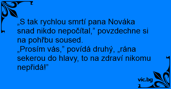 „Prosím vás,” povídá druhý, „rána sekerou do hlavy, to na zdraví nikomu nepřidá!”