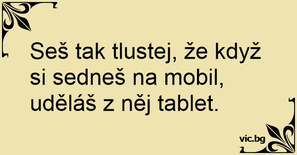 Seš tak tlustej, že když si sedneš na mobil, uděláš z něj tablet.