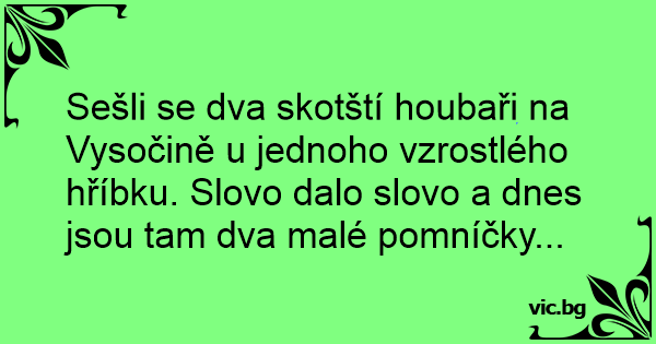 Sešli se dva skotští houbaři na Vysočině u jednoho vzrostlého hříbku. Slovo dalo slovo a dnes jsou tam dva malé pomníčky...