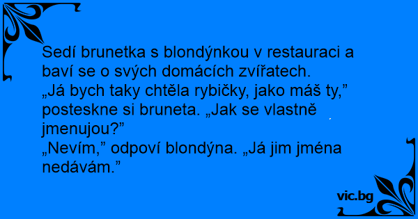 „Nevím,” odpoví blondýna. „Já jim jména nedávám.”