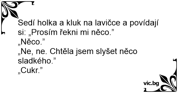 Sedí holka a kluk na lavičce a povídají si: „Prosím řekni mi něco.”