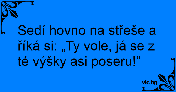 Sedí hovno na střeše a říká si: „Ty vole, já se z té výšky asi poseru!”