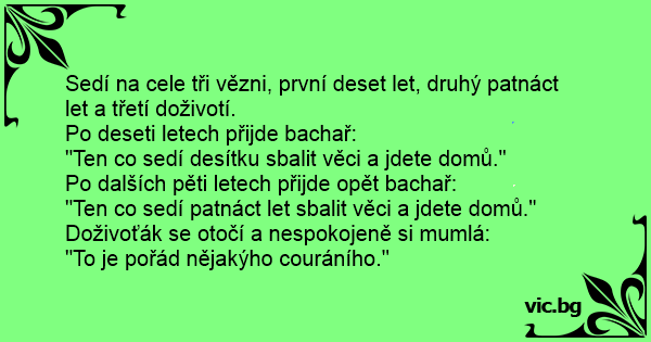 Sedí na cele tři vězni, první deset let, druhý patnáct let a třetí doživotí.