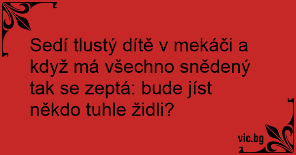 Sedí tlustý dítě v mekáči a když má všechno snědený tak se zeptá: bude jíst někdo tuhle židli?