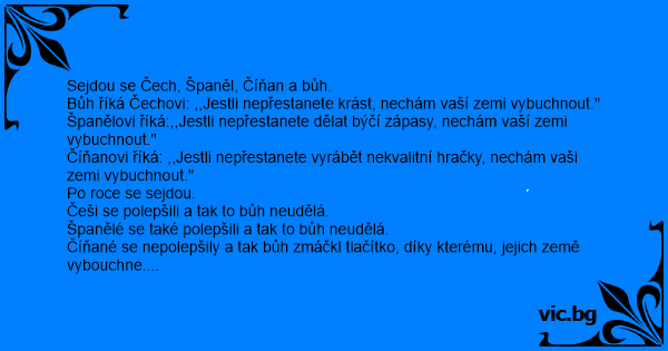 Sejdou se Čech, Španěl, Číňan a bůh.