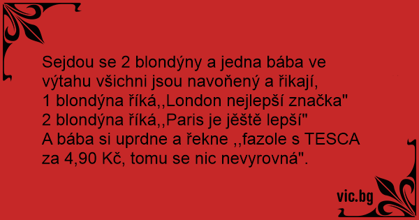 Sejdou se 2 blondýny a jedna bába ve výtahu všichni jsou navoňený a řikají,