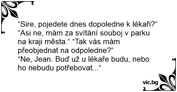 “Asi ne, mám za svítání souboj v parku na kraji města.“ “Tak vás mám přeobjednat na odpoledne?“