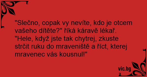 "Slečno, copak vy nevíte, kdo je otcem vašeho dítěte?" říká káravě lékař.