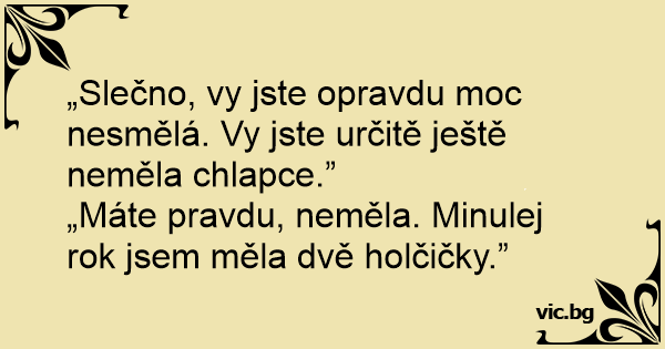 „Slečno, vy jste opravdu moc nesmělá. Vy jste určitě ještě neměla chlapce.”