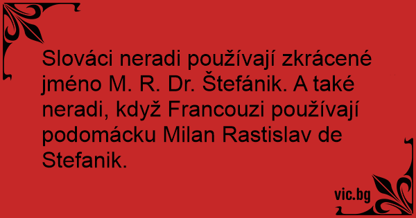 Slováci neradi používají zkrácené jméno M. R. Dr. Štefánik. A také neradi, když Francouzi používají podomácku Milan Rastislav de Stefanik.