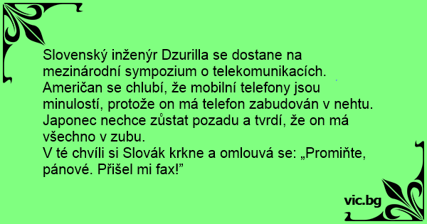 V té chvíli si Slovák krkne a omlouvá se: „Promiňte, pánové. Přišel mi fax!”