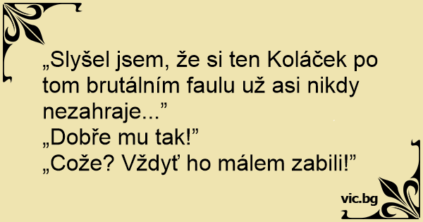 „Slyšel jsem, že si ten Koláček po tom brutálním faulu už asi nikdy nezahraje...”