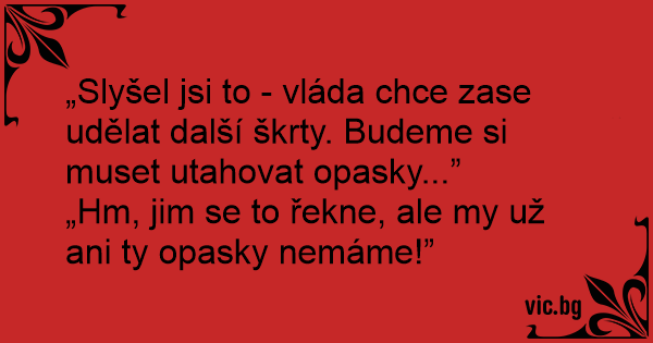 „Slyšel jsi to - vláda chce zase udělat další škrty. Budeme si muset utahovat opasky...”