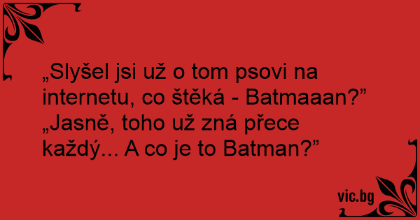 „Slyšel jsi už o tom psovi na internetu, co štěká - Batmaaan?”