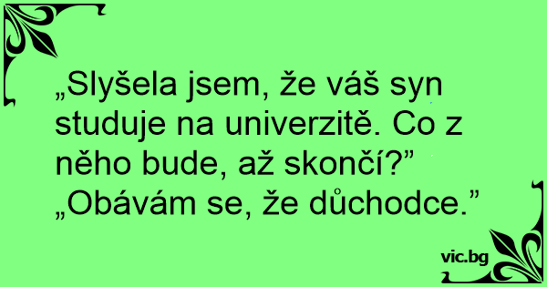 „Slyšela jsem, že váš syn studuje na univerzitě. Co z něho bude, až skončí?”