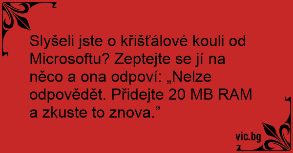 Slyšeli jste o křišťálové kouli od Microsoftu? Zeptejte se jí na něco a ona odpoví: „Nelze odpovědět. Přidejte 20 MB RAM a zkuste to znova.”