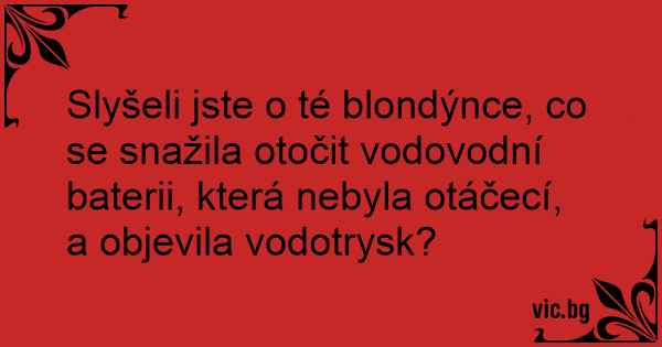 Slyšeli jste o té blondýnce, co se snažila otočit vodovodní baterii, která nebyla otáčecí, a objevila vodotrysk?