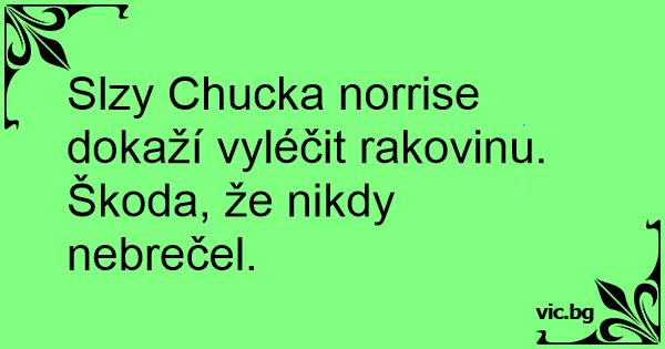Slzy Chucka norrise dokaží vyléčit rakovinu. Škoda, že nikdy nebrečel.