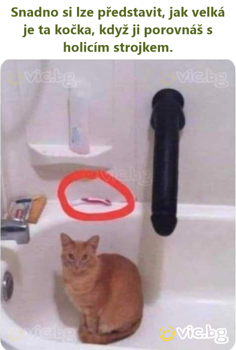Pažiūrėk į skutimosi peiliuką, kad suprastum, koks didelis tas katinas!