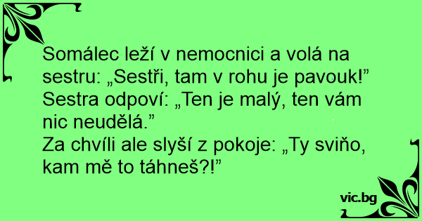 Somálec leží v nemocnici a volá na sestru: „Sestři, tam v rohu je pavouk!”