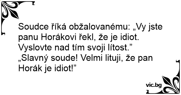 „Slavný soude! Velmi lituji, že pan Horák je idiот!”