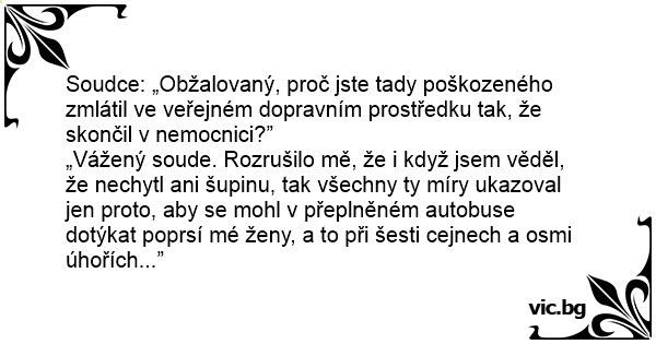 Soudce: „Obžalovaný, proč jste tady poškozeného zmlátil ve veřejném dopravním prostředku tak, že skončil v nemocnici?”