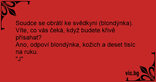 Soudce se obrátí ke svědkyni (blondýnka).