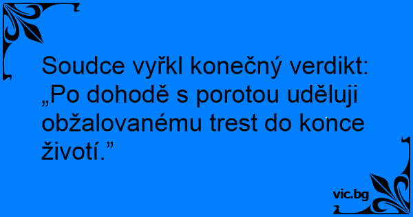 Soudce vyřkl konečný verdikt: „Po dohodě s porotou uděluji obžalovanému trest do konce životí.”