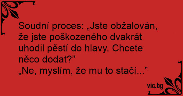 Soudní proces: „Jste obžalován, že jste poškozeného dvakrát uhodil pěstí do hlavy. Chcete něco dodat?”