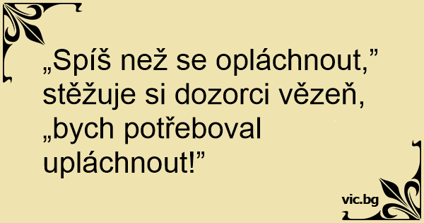 „Spíš než se opláchnout,” stěžuje si dozorci vězeň, „bych potřeboval upláchnout!”
