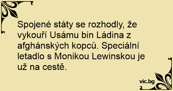 Spojené státy se rozhodly, že vykouří Usámu bin Ládina z afghánských kopců. Speciální letadlo s Monikou Lewinskou je už na cestě.