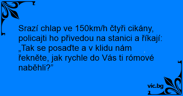 Srazí chlap ve 150km/h čtyři cikány, policajti hо přivedou na stanici a říkají: