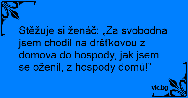 Stěžuje si ženáč: „Za svobodna jsem chodil na dršťkovou z domova do hospody, jak jsem se oženil, z hospody domů!”