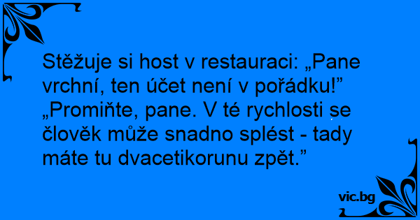 „Promiňte, pane. V té rychlosti se člověk může snadno splést - tady máte tu dvacetikorunu zpět.”
