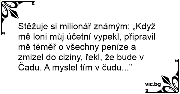 Stěžuje si milionář známým: „Když mě loni můj účetní vypekl, připravil mě téměř o všechny peníze a zmizel do ciziny, řekl, že bude v Čadu. A myslel tím v čudu...”