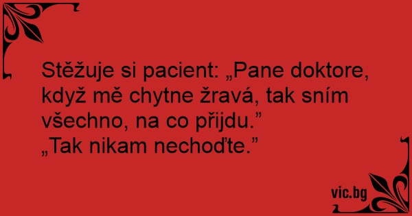 Stěžuje si pacient: „Pane doktore, když mě chytne žravá, tak sním všechno, na co přijdu.”