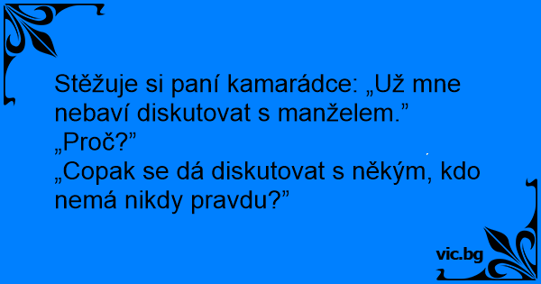 Stěžuje si paní kamarádce: „Už mne nebaví diskutovat s manželem.”