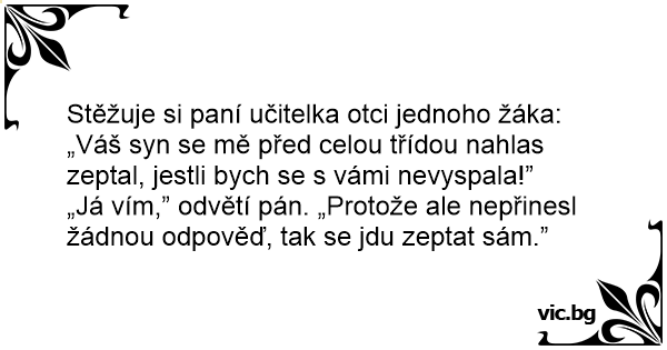 „Já vím,” odvětí pán. „Protože ale nepřinesl žádnou odpověď, tak se jdu zeptat sám.”