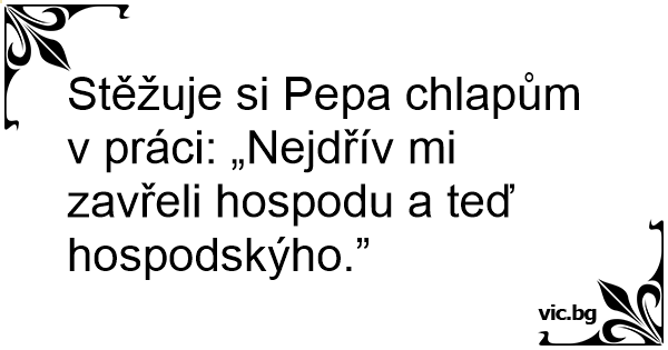 Stěžuje si Pepa chlapům v práci: „Nejdřív mi zavřeli hospodu a teď hospodskýho.”