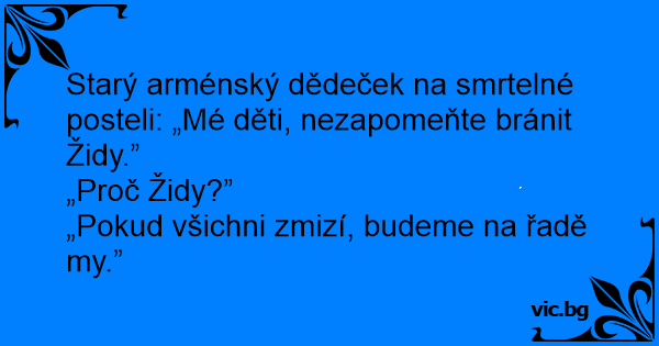 Starý arménský dědeček na smrtelné posteli: „Mé děti, nezapomeňte bránit Židy.”