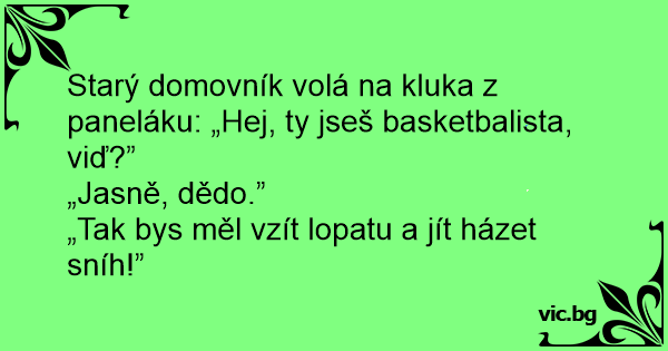 Starý domovník volá na kluka z paneláku: „Hej, ty jseš basketbalista, viď?”