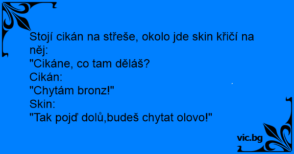 Stojí cikán na střeše, okolo jde skin křičí na něj: