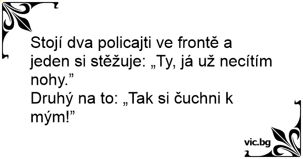 Stojí dva policajti ve frontě a jeden si stěžuje: „Ty, já už necítím nohy.”