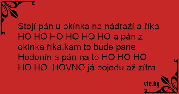 Stojí pán u okínka na nádraží a říka НО НО НО НО НО НО a pán z okínka říka,kam to bude pane Hodonín a pán na to НО НО НО НО НО HOVNO já pojedu až zítra