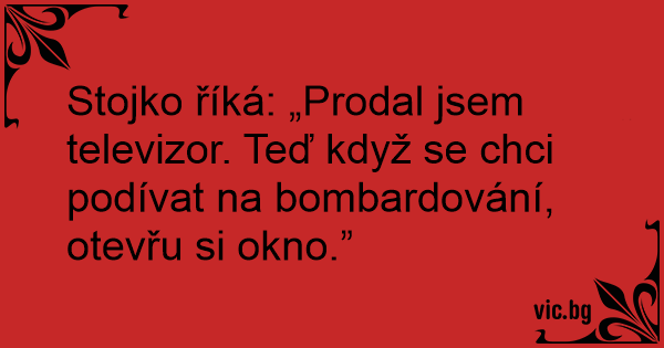 Stojko říká: „Prodal jsem televizor. Teď když se chci podívat na bombardování, otevřu si okno.”