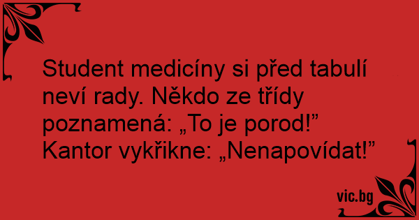 Student medicíny si před tabulí neví rady. Někdo ze třídy poznamená: „To je porod!”